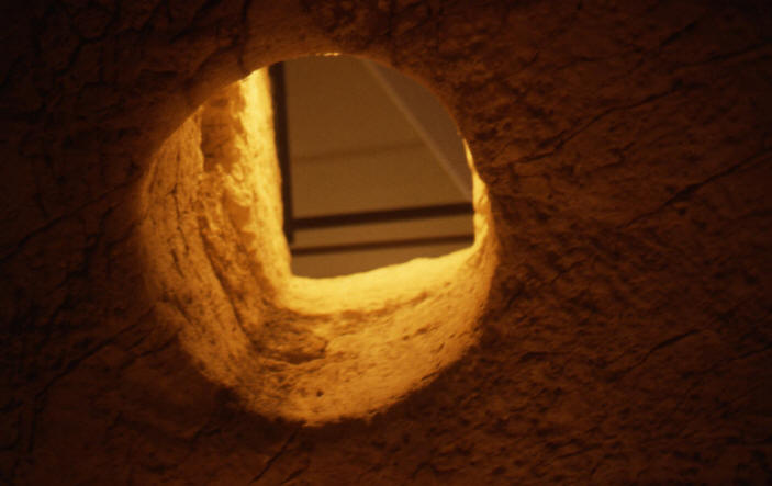 would have actually been lowered into the cell through this hole in the ceiling.