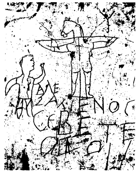 donkey’s head. The sarcastic inscription says, “Alexamenos worships his