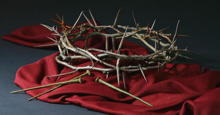 together a crown of thorns and set it on his head. They put a staff in his right