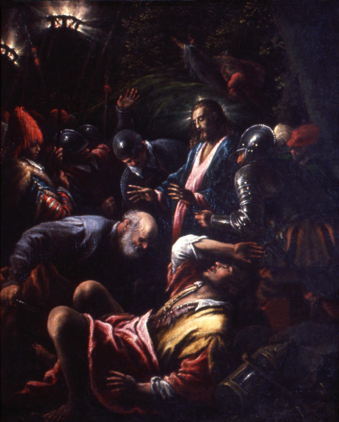 “The Healing of Malchus’ Ear” This painting from later in the 1500’s portrays the moment when Malchus’
