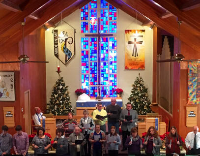 Trinity has a strong tradition of an excellent Choir, which sings for worship several dozen times a year, as well as a Tone Chimes Choir. See the picture at the top of this page of them performing together at Christmas. We are blessed with extremely fine acoustics in our Sanctuary and balcony, which enhances our singing and enriches our worship experience. As part of our Building Addition & Modernization Project in 2018 an excellent Music Room was added adjacent to the balcony. All are welcome to participate!